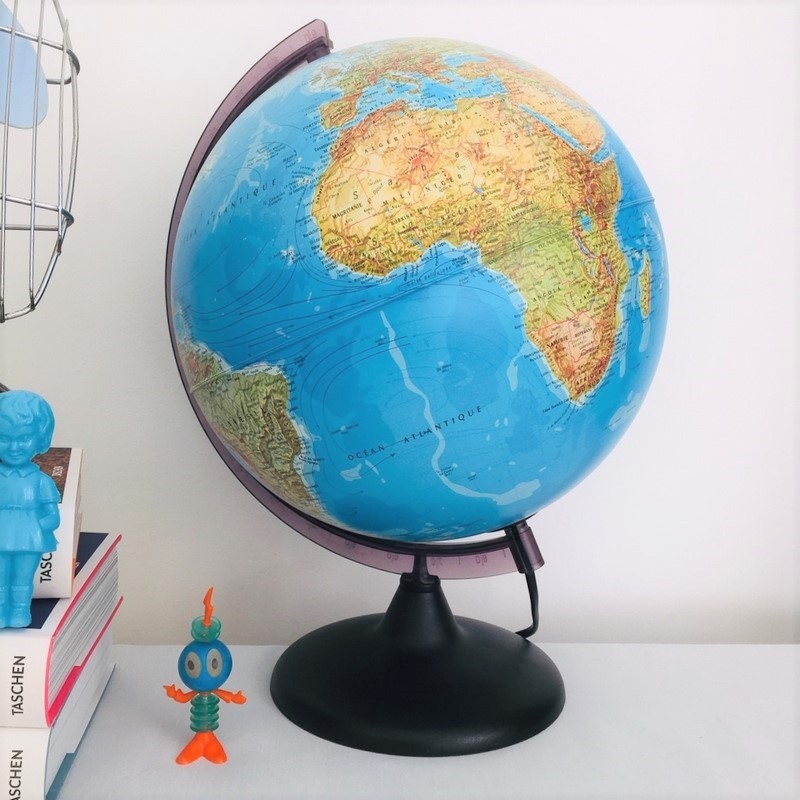 Globe terrestre, Grande mappemonde lumineuse de la réputée marque italienne Tecnodidattica, années 90