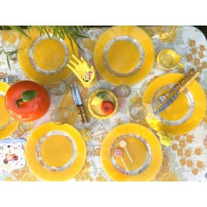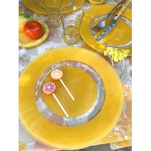 Lot de 6 assiettes plates en verre trempé, coloris jaune et transparent.