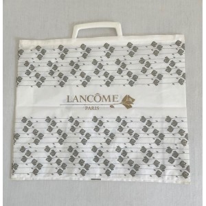 - 1 sac, poche Lancôme en plastique couleur blanc avec poignées, décor, Marque et logo sur le recto et le verso. Dimensions : 36 x 30 cm.