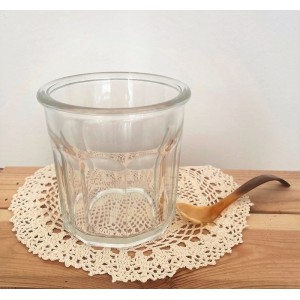 1 pot à confiture ancien en verre, contenance 500 ml.