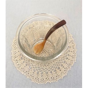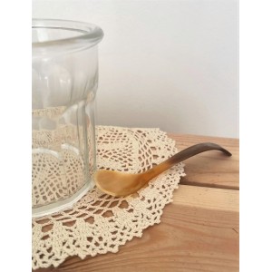 1 cuillère en corne de buffle, origine Bali, Longueur : 12 cm (couleur variant du jaune au noir).