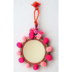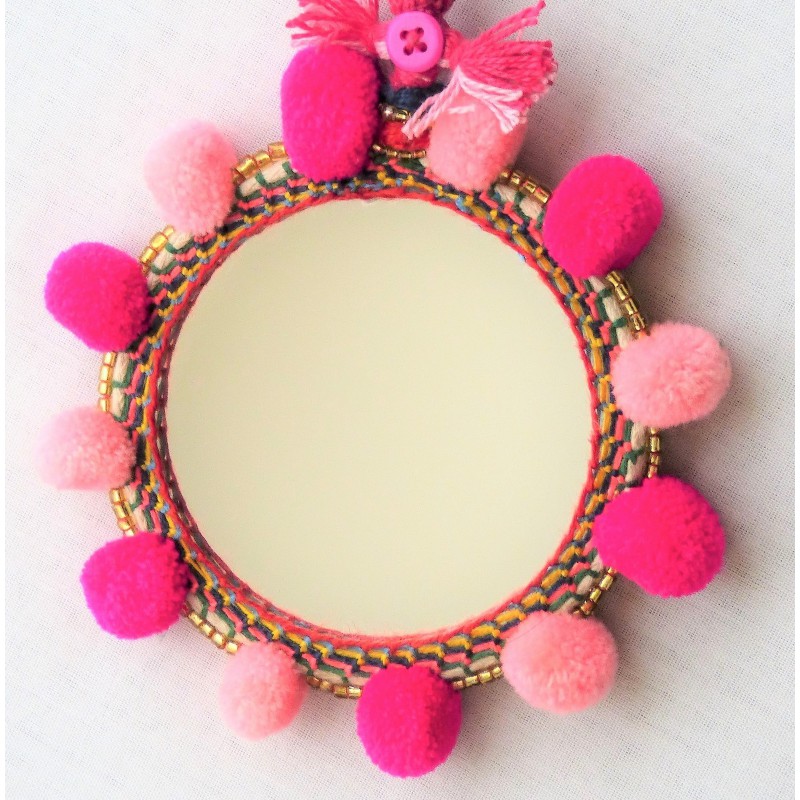 Miroir avec pompons laine rose