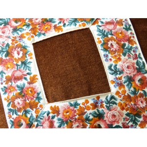 Sur le recto, tissu imprimé de fleurs. Verso uni.