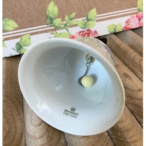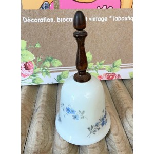 Cloche de table, de comptoir en porcelaine Bavaria Bareuther Waldsassen, modèle Myosotis Veronica, à décor de petites fleurs bleues, sur fond blanc.
