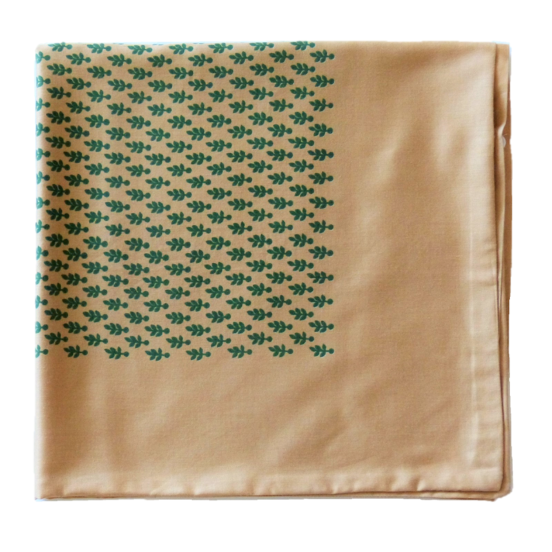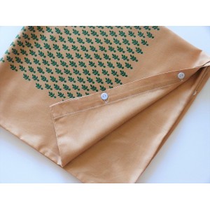 Taie de coloris marron/ocre doré (effet satiné) avec imprimé vert.