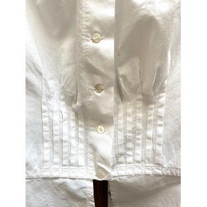 Blouse, chemisier, corsage à manches courtes à boutonnage (7 boutons anciens) en coton léger blanc.