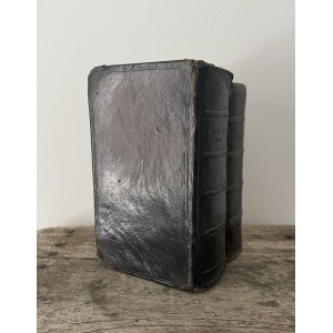 - Paroissien Romain début 19e . Reliure cuir noir (Textes en N&B). 949 pages. État : Couverture avec point d'usure sur le haut. Intérieur : rousseurs, papier jauni, quelques déchirures. Manque de pages début et fin de livre. Dim. 14,5 x 9 cm. Prof : 4,3 cm.