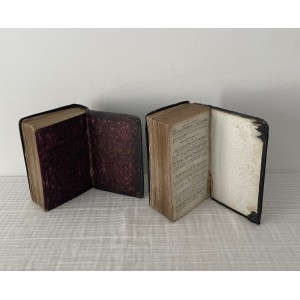 - Recueil de prières de 1911. Reliure simili-cuir bordeaux, tranche dorée (textes en N&B et rouge). 762 pages. État : Couverture en bon état général, quelques minimes traces. Intérieur correct, quelques minimes rousseurs. Dim. 12,5 x 7,5 cm. Prof : 2 cm.