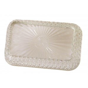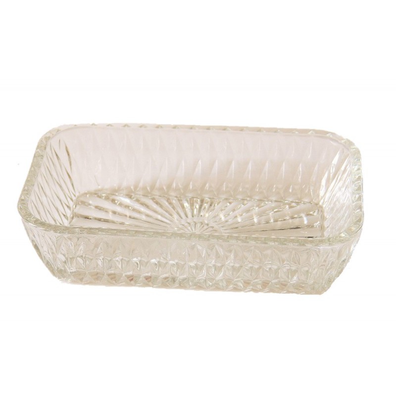 Beurrier, ramequin en verre épais forme rectangulaire transparent à décor taille de diamant.
