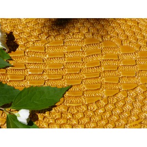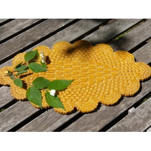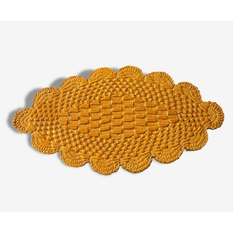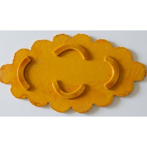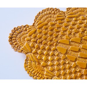 Dessous de plat, centre de table avec décor en trompe-l'œil vannerie sur céramique émaillée de coloris ocre orangé.