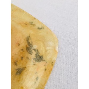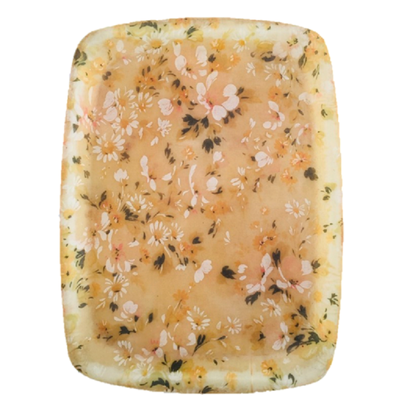 Plateau en résine, fibre de verre. Décor floral jaune, blanc, vert sur fond jaune pâle.
