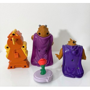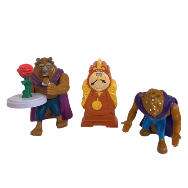 ETAT : Figurines vintage. En bon état général avec quelques légères marques et traces d'usures. A noter qu'il manque la cloche du globe et les jetons de l'horloge et le bouton au dos de la figurine La Bête 1998 est HS mais bien présent. Figurines propres, nettoyées.