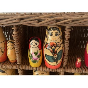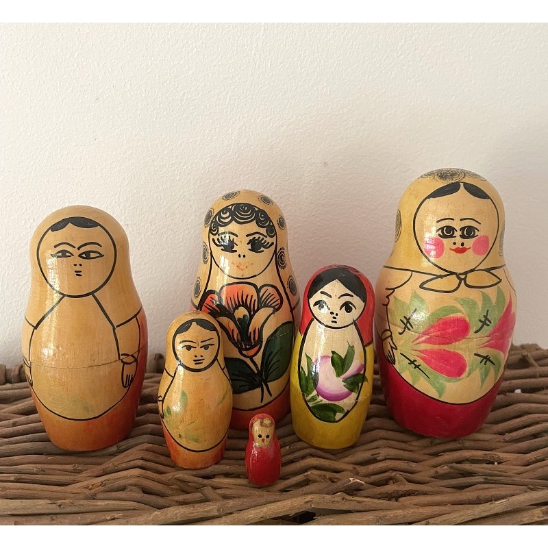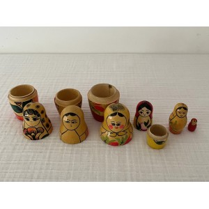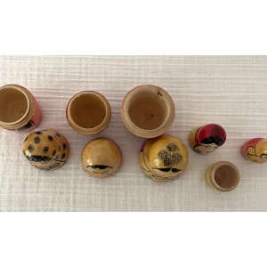 Lot de 6 poupées russes, matriochkas en bois décoré peint à la main. Finition vernie.