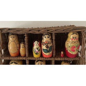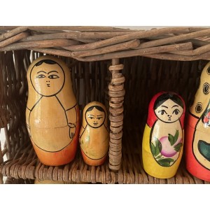 Poupées dépareillées de tailles et décors différents, 4 poupées sur 6 s'ouvrent.