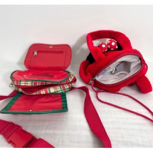 - 1 Sac peluche rouge avec visage de Minnie. 2 poignées, 1 cordelette.