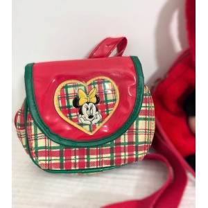 - 1 Sac Disney Store en PVC vinyle à motifs carreaux, personnage de Minnie dans un coeur. 1 poignée, 1 ceinture réglable pour la taille.