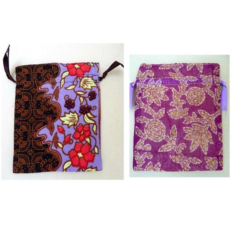Lot de 2 pochettes en tissu Batik imprimé fleuri, doublure satin.