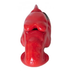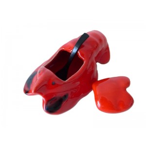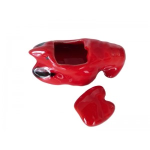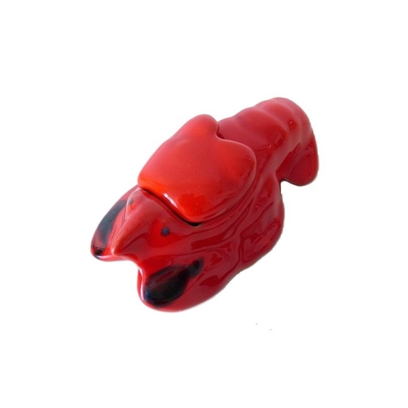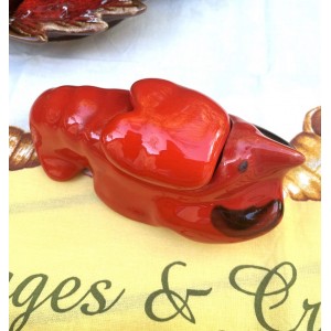 Moutardier en forme de Homard en céramique vernissée rouge et noire. Dimensions : 14 x 6 cm.