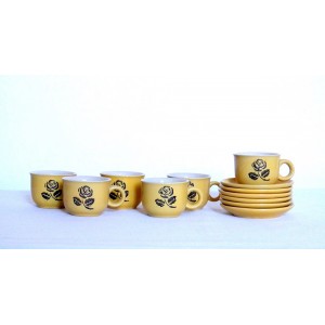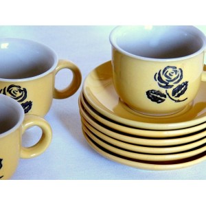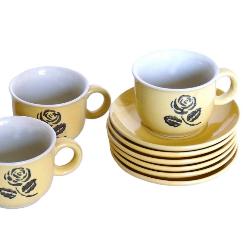 Tasses & soucoupes jaunes 60's avec rose