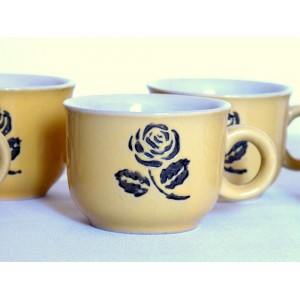Lot de 6 tasses et 6 soucoupes en faïence avec un joli décor de rose incrusté en relief.