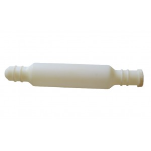 - d'un rouleau à pâtisserie Tupperware avec bouchon vissé, années 60. Coloris blanc pastel. Longueur : 39 cm.