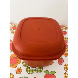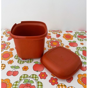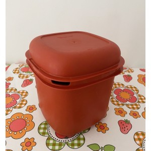 Boite et couvercle coloris "orange/brique" avec ouverture pour une cuillère.
