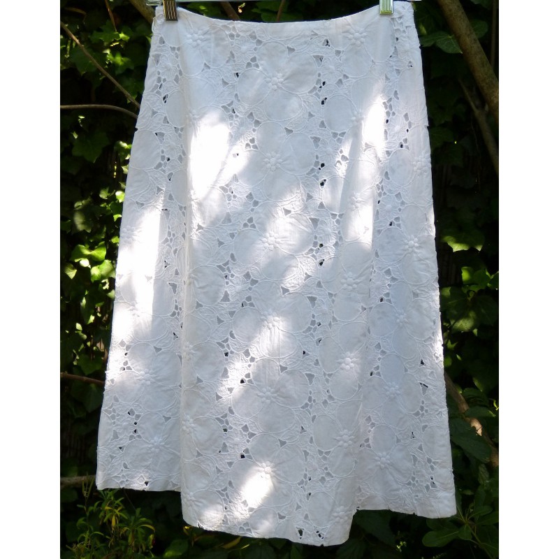 Jupe en coton, forme trapèze, coloris blanc, avec fermeture éclair.