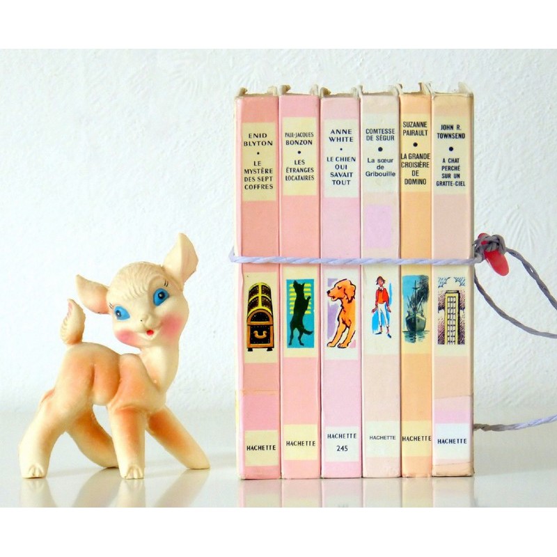 Livres de la Bibliothèque rose ficelés à mettre en scène pour une déco vintage