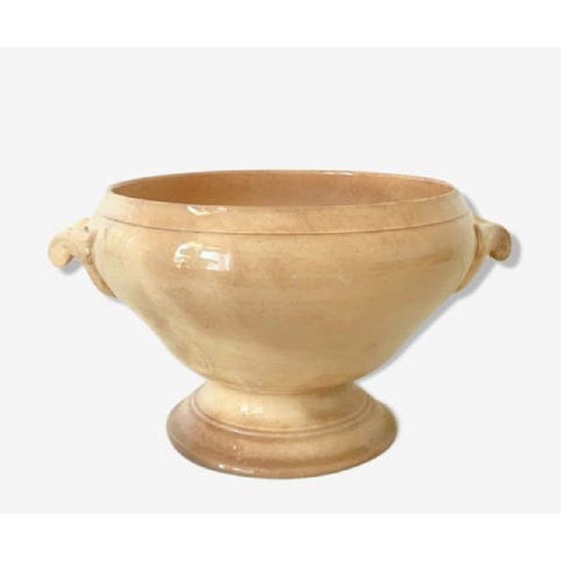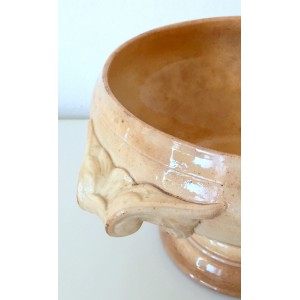 Saladier rond, soupière sur pied, modèle Opaque de Sarreguemines avec de magnifiques poignées sculptées.
