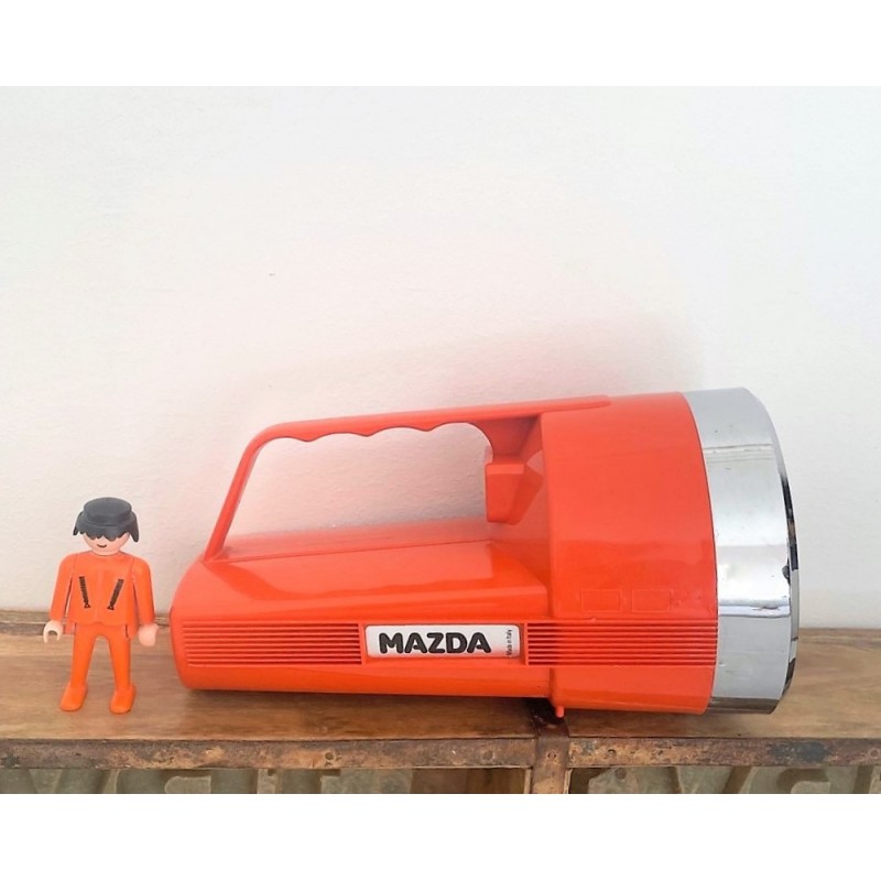 Lampe à poignée en plastique orange de marque Mazda, Made in Italy.