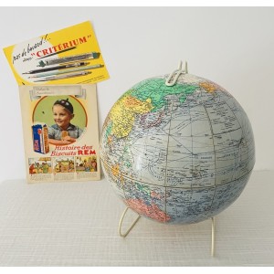 Globe terrestre, Mappemonde sur piétement amovible. Echelle : 1/40.000.000 (1 millimètre pour 40 km).